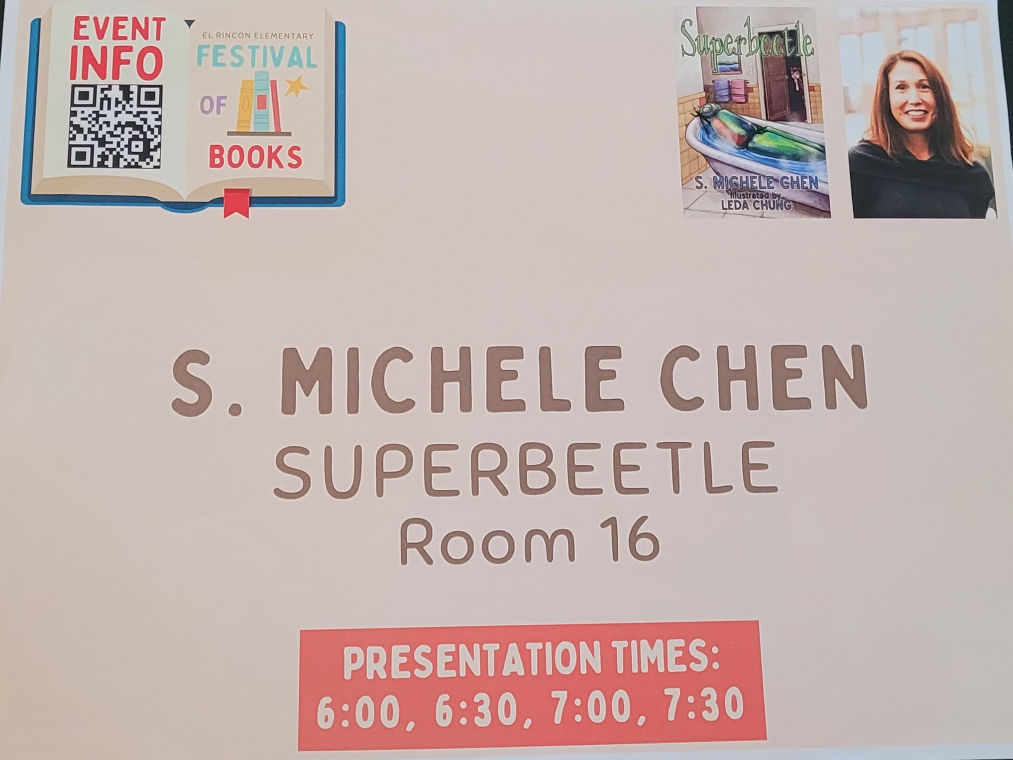 It was the first Festival of Books at El Rincon Elementary School where five authors, including me, were stationed in different classrooms to present their book to students and their families.